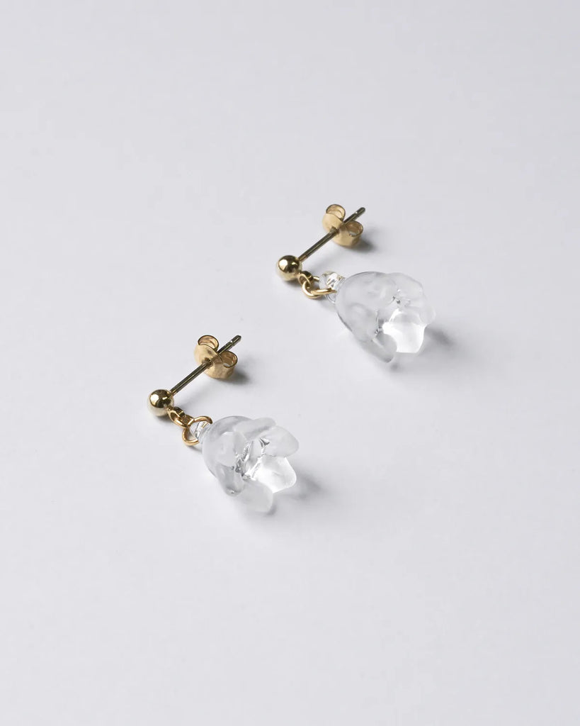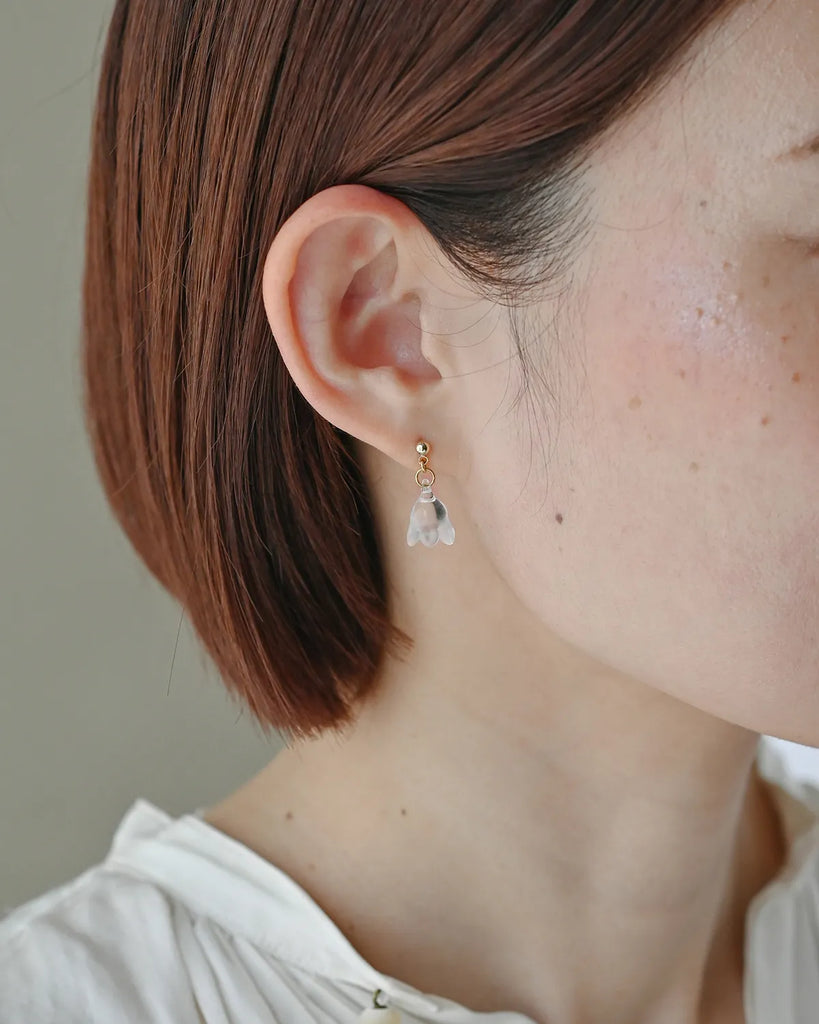 The earrings sway at your ears like fluttering snow.
