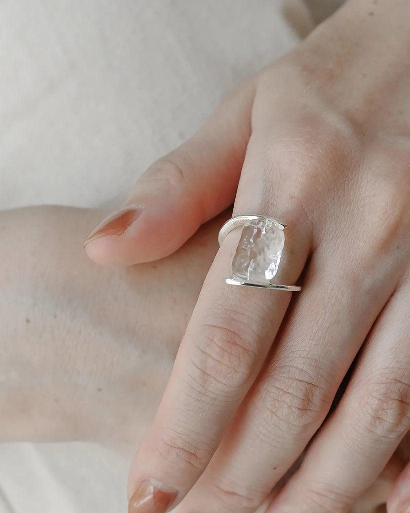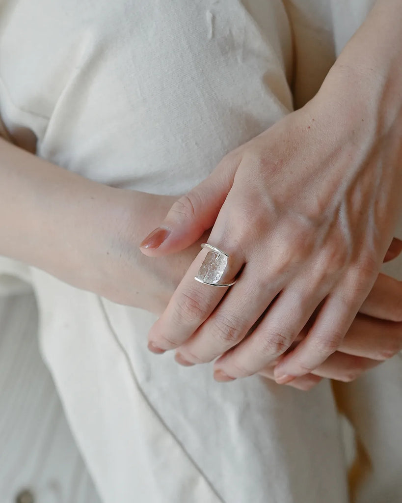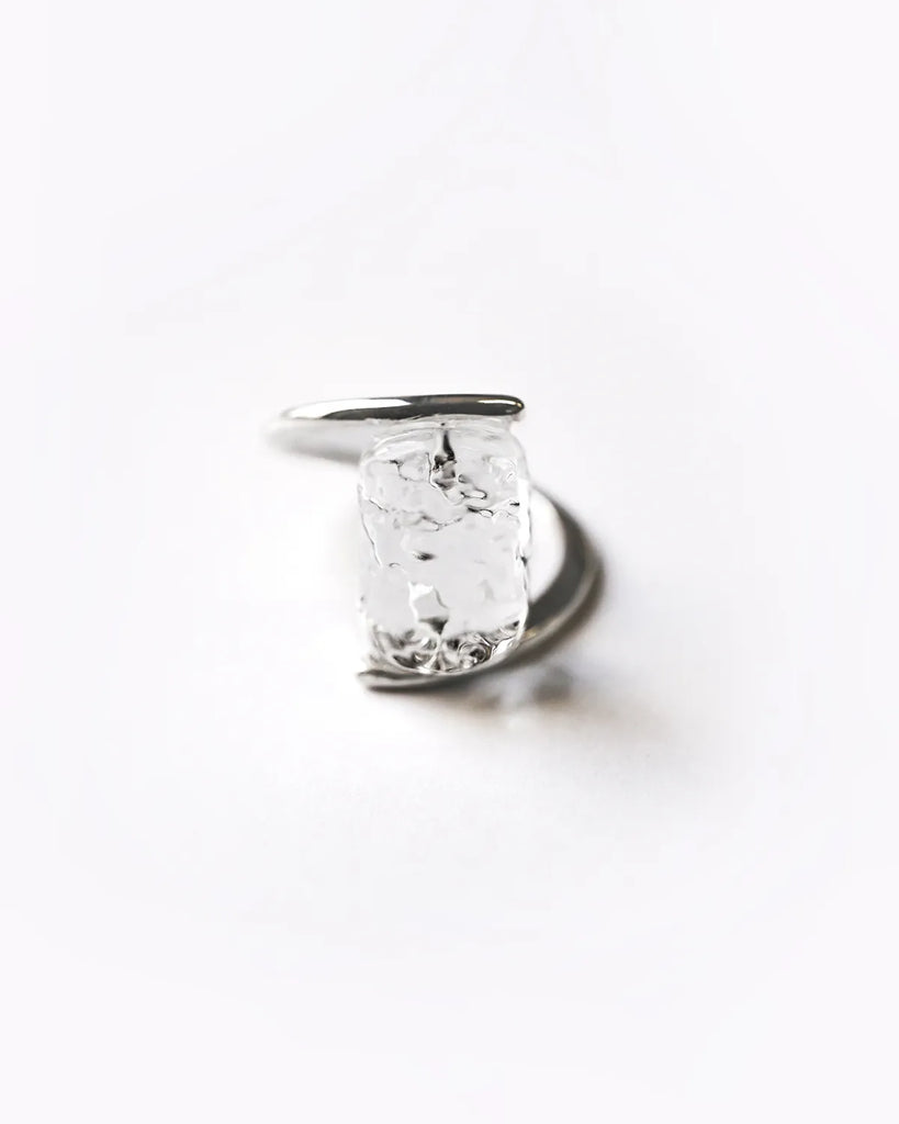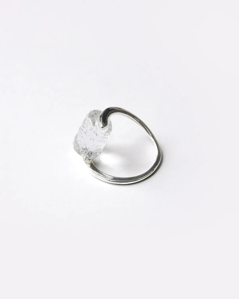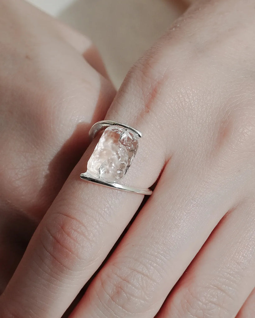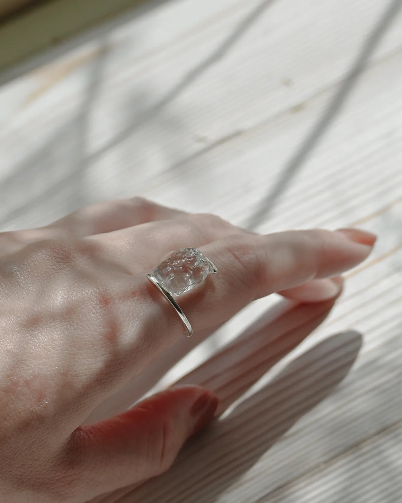 As it quietly melts, it creates transparent fragments of light.