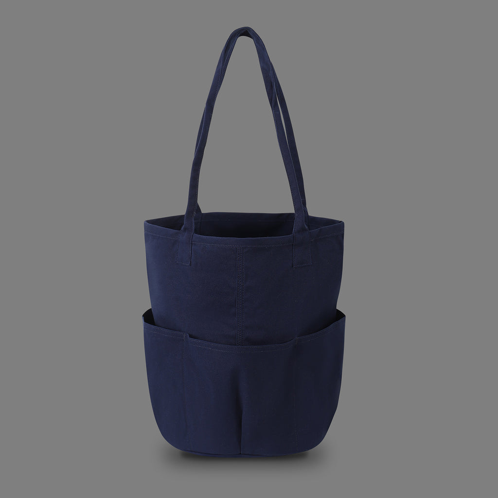 The high-capacity cylindrical tool bag is made of Japanese-made canvas fabric that has been washed and hand-rubbed, resulting in a natural and unique texture.