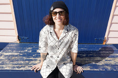 The pattern shirt has a relaxed and straight fit, the matching patterned front pockets and a corozo button closure.