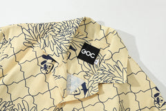 The shirt is made of breathable tencel linen fabric and it features with the pattern of Chrysanthemum Mornings.