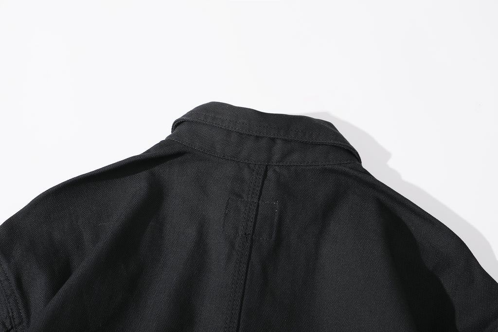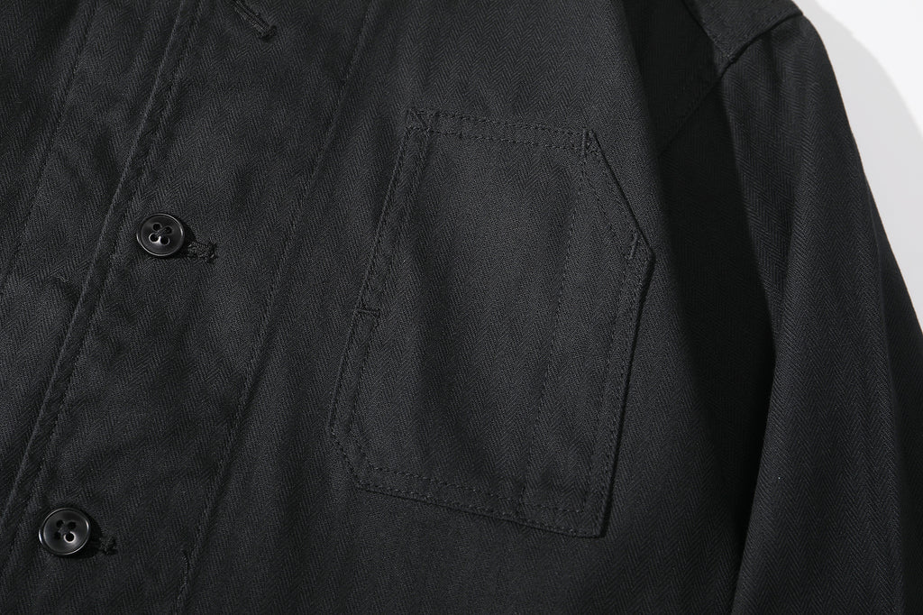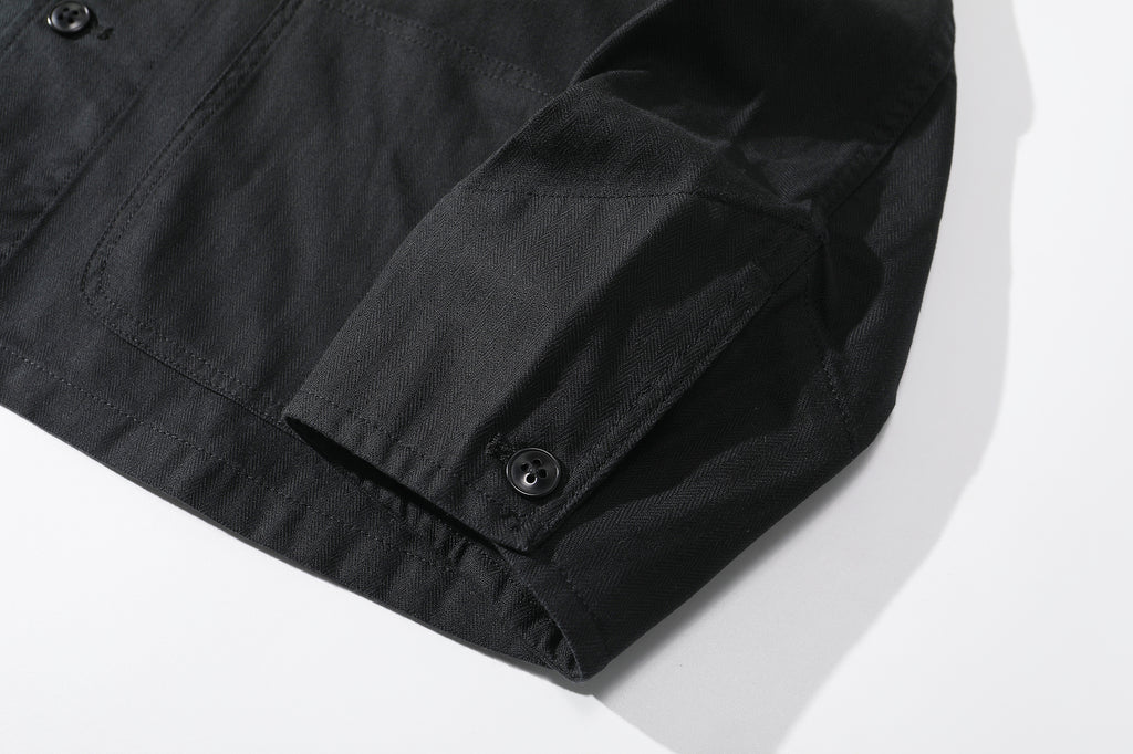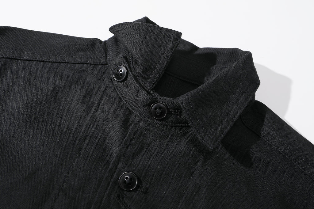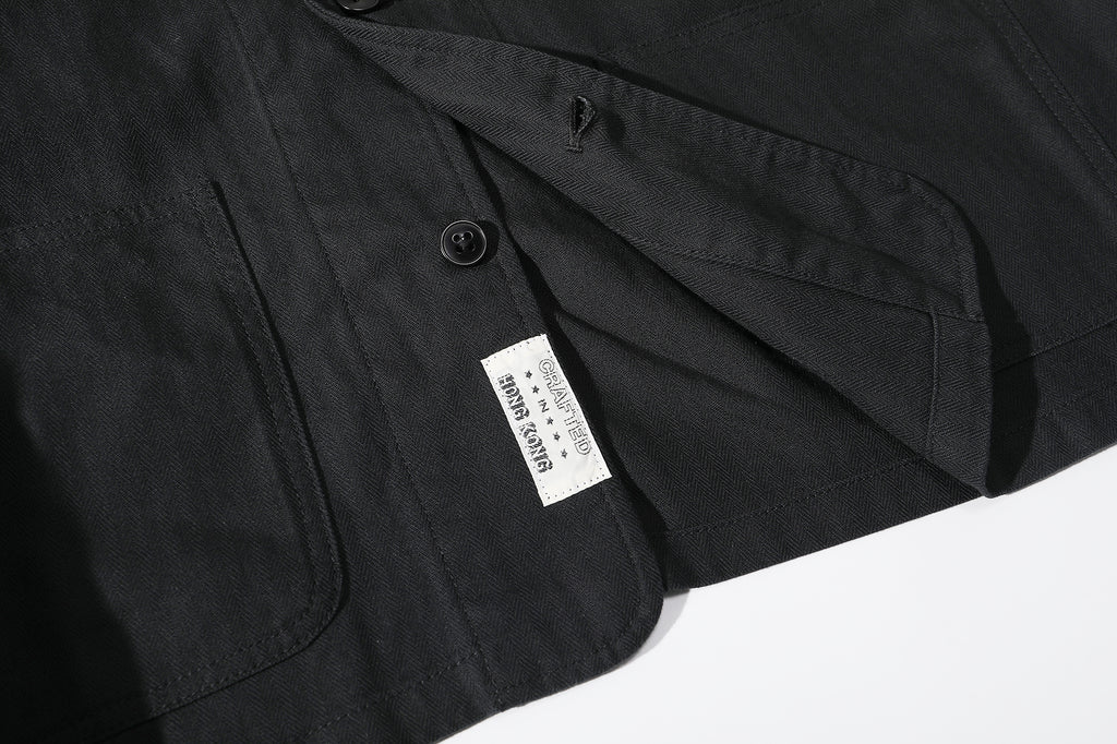 The jacket is made of Japanese cotton herringbone fabric which features with the subtle stripes appearance.
