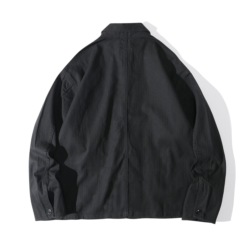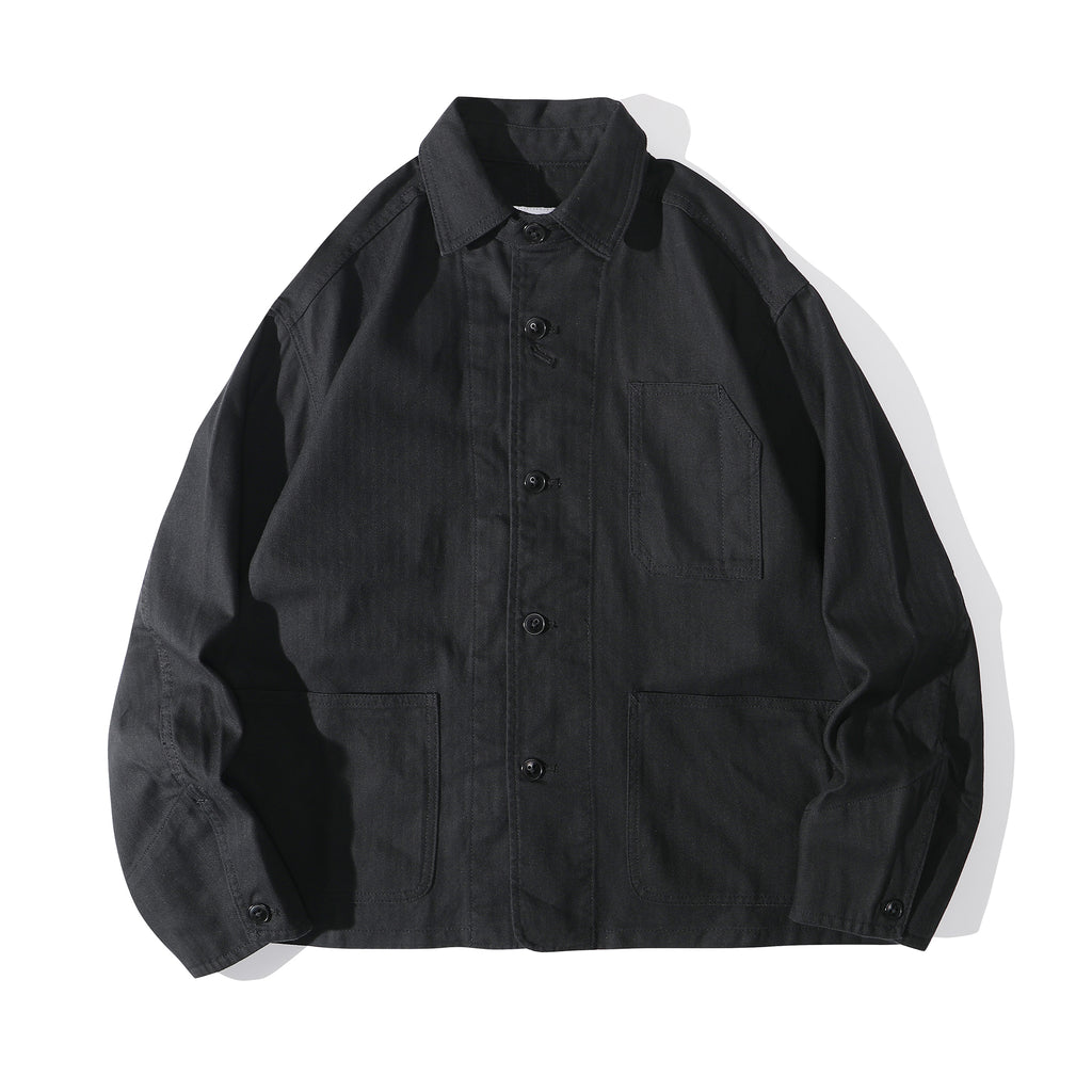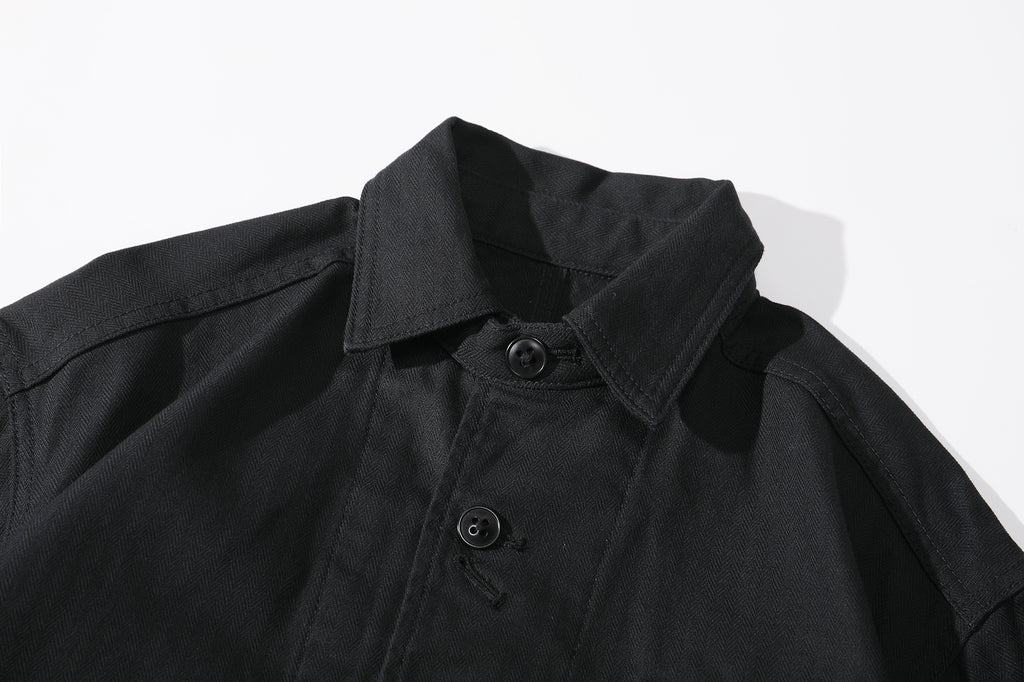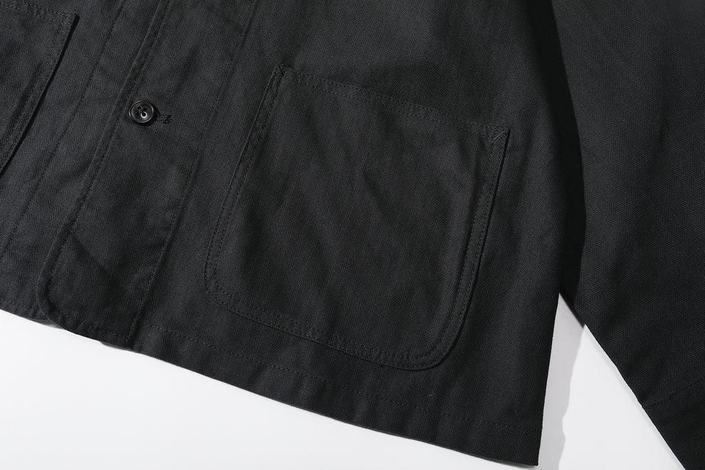 The jacket is made of Japanese cotton herringbone fabric which features with the subtle stripes appearance.