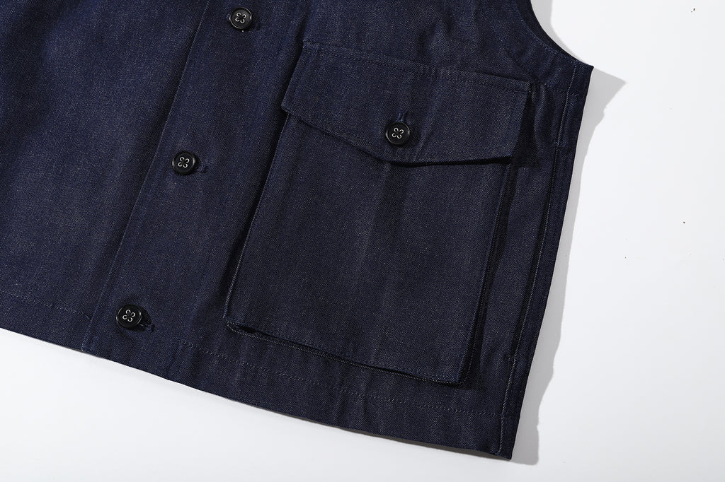 The vest is made of Japanese 100% cotton denim fabric.
