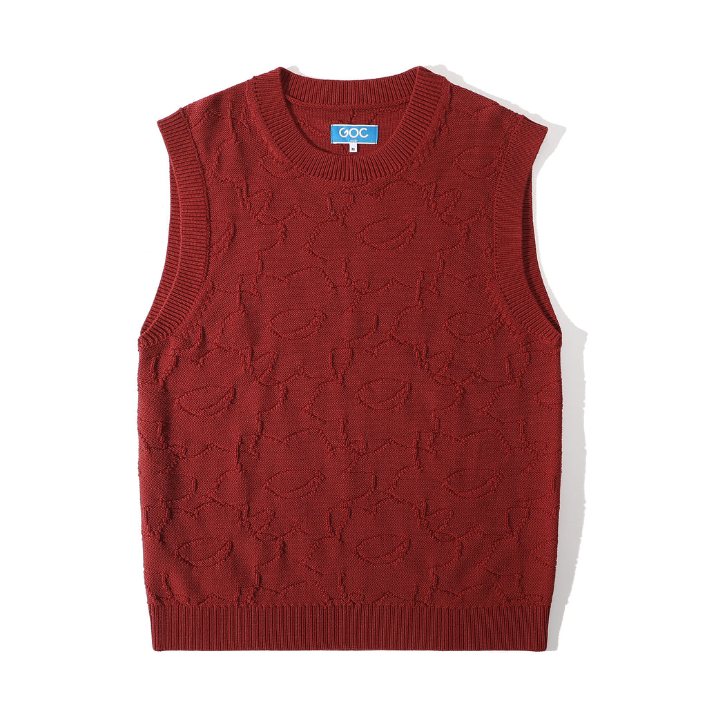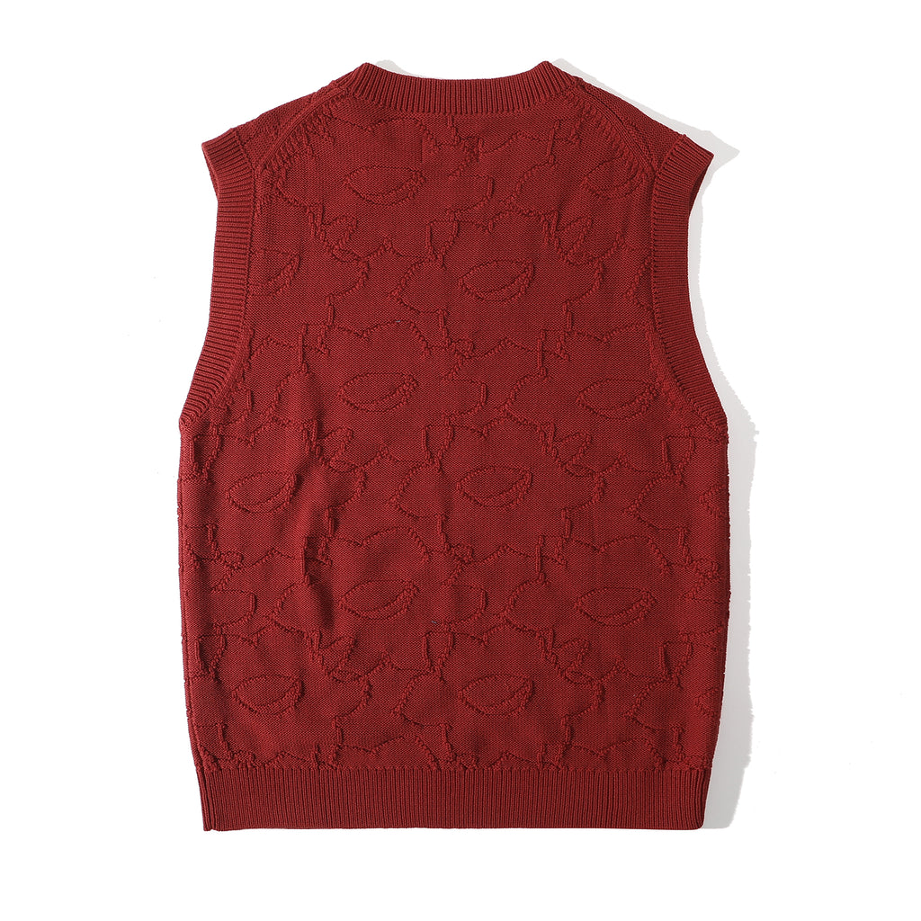 The knit vest has a relaxed fit and features a tonal color with a daffodils pattern in jacquard knit.