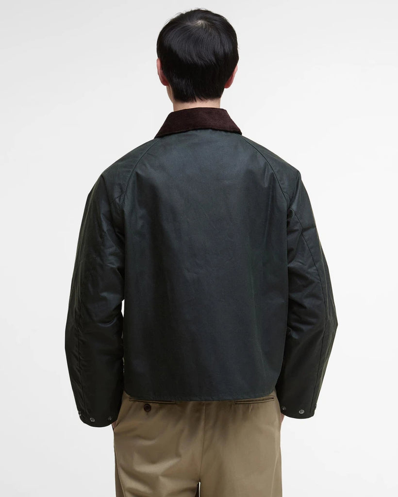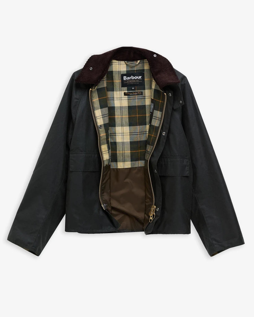 This shorter, waxed cotton jacket features distinctive Tartan cuff facings and a smart cord collar.