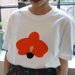 The cotton t-shirt has a relaxed fit and it features the large printed Orchid flower with felt details in the front.