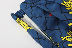 The mid-length skirt is made of high quality cotton fabric and it features the pattern of chrysanthemum navy.