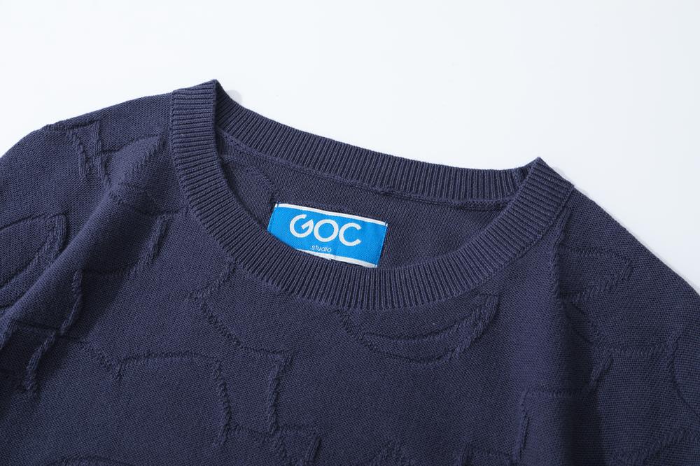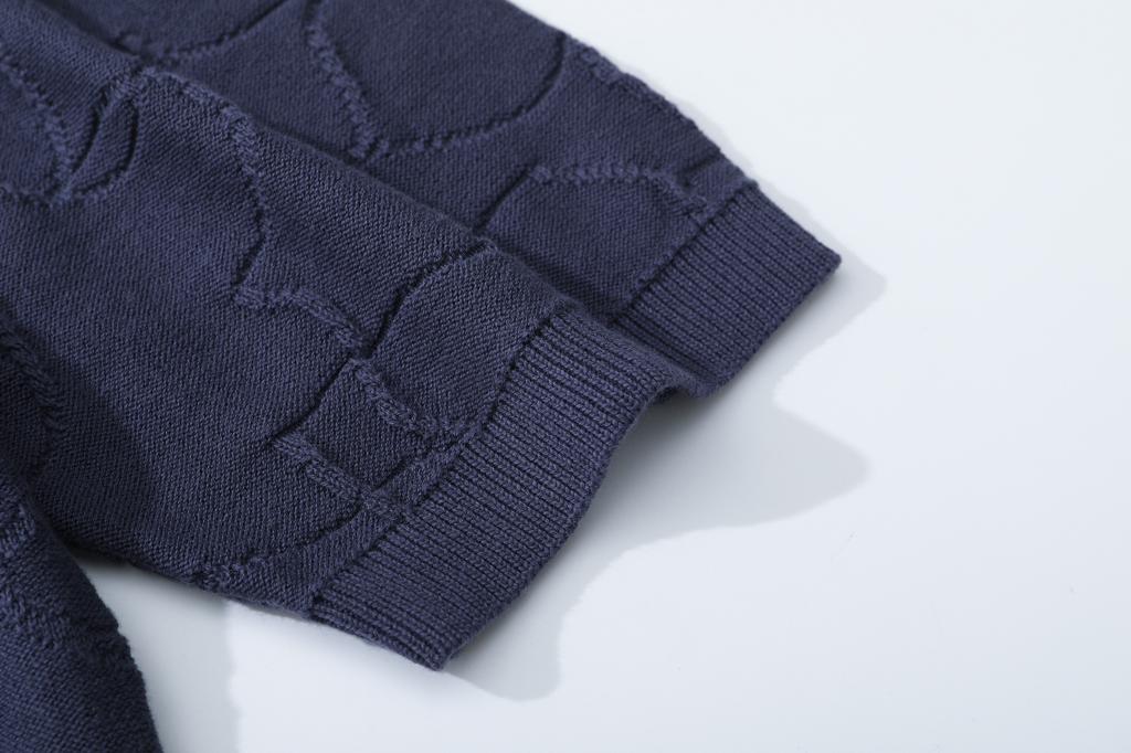 The summer knit top has a relaxed fit and features a tonal color with a daffodils pattern in jacquard knit.