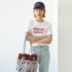 Home/Products/Red Good Luck Slogan Cotton T-shirt - White