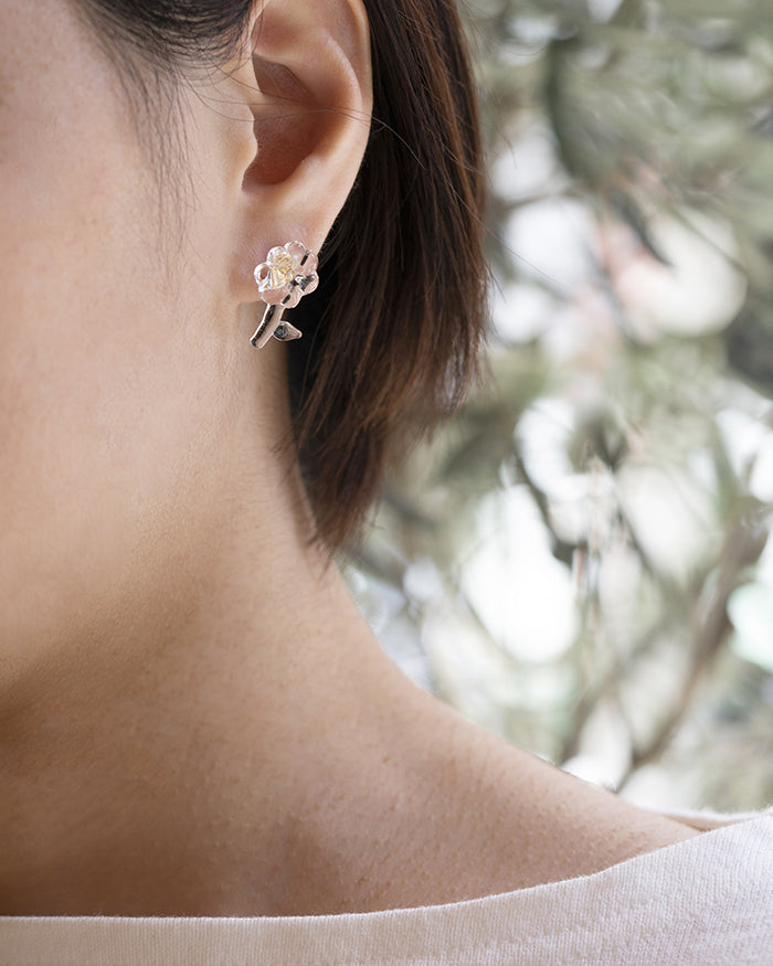 The earrings have a motif of 'Hanauta' flowers.