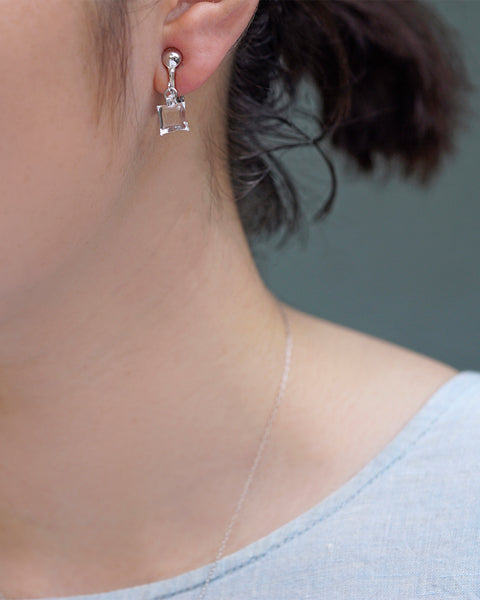 A 3D shape composed of small surfaces. It shines white and bright like the light of the moon. The small glass creates a subtle and gorgeous look around your ears.