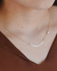 This fantastical design features pearls floating a short distance away from the sparkling glass on your chest.