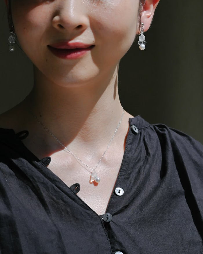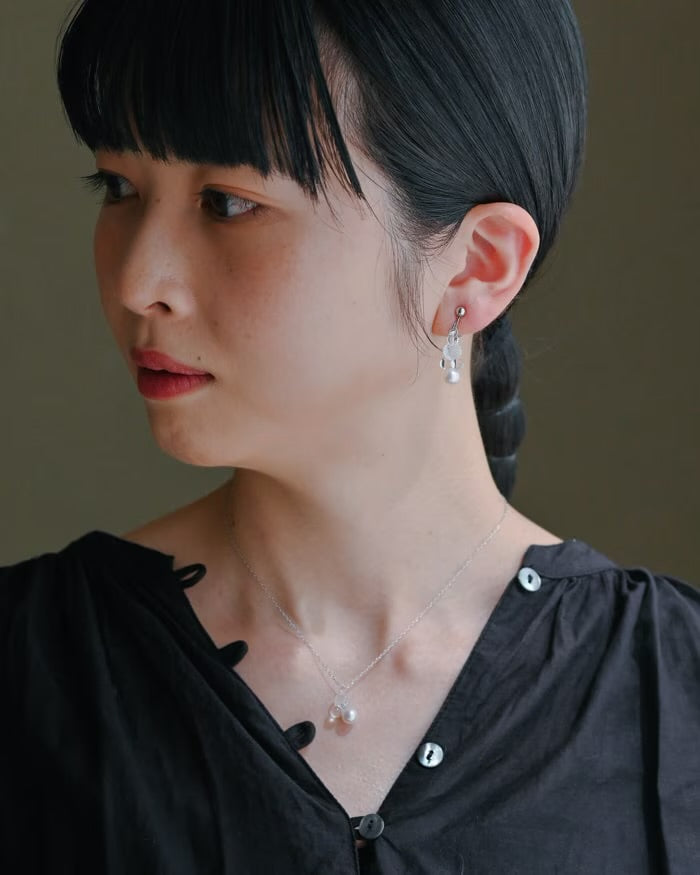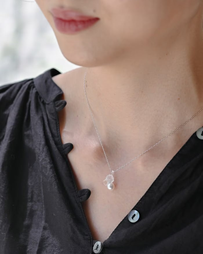 Material: Heat-resistant glass, Freshwater pearl, Brass + rhodium color plating (silver color)