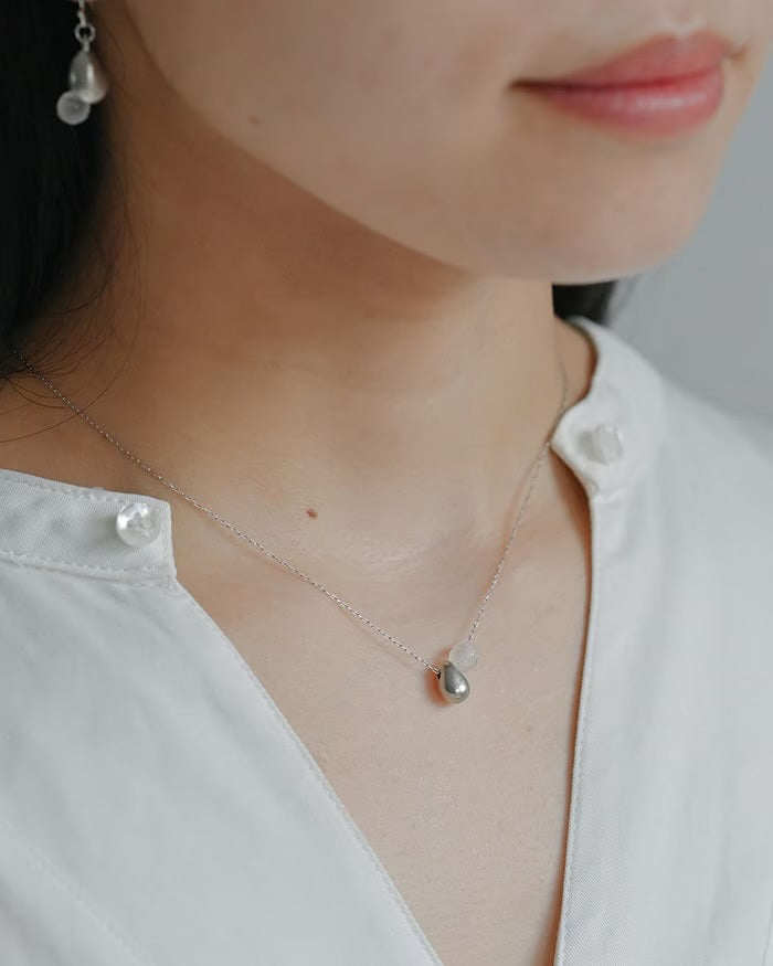 It is inspired by the glittering drops of water as they fall. With their smooth texture and shape, they shine as they stand out among your outfit.