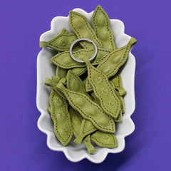 The green keyring is made of Italian vegetable tanned leather, inside there are 3 leather "beans" you may touch and feel.