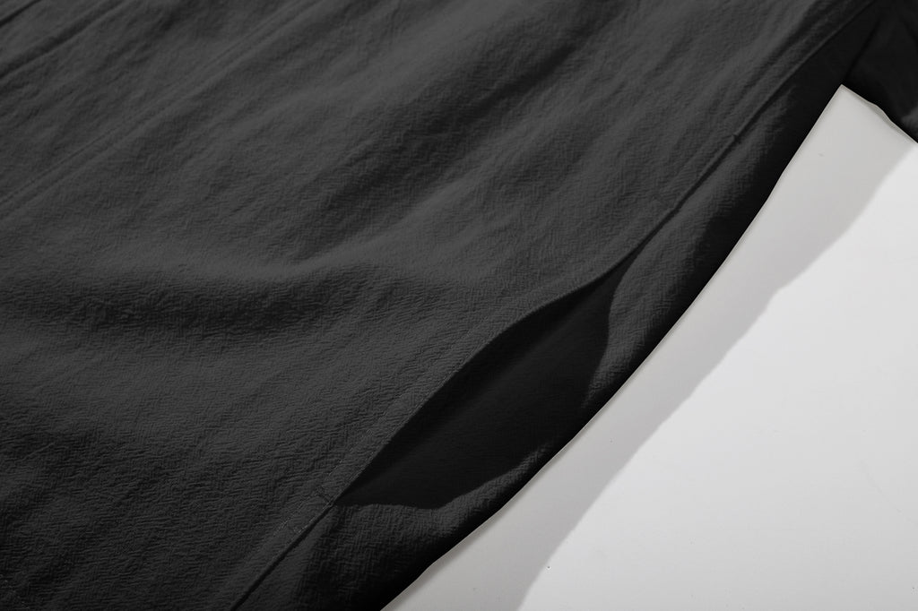 The shirt is made of Japanese 100% cotton fabric which features with bird claw texture. The fabric is finished by special washer finishing to make uneven wrinkle like footprints of birds.