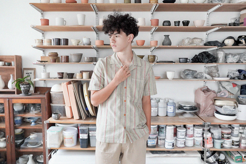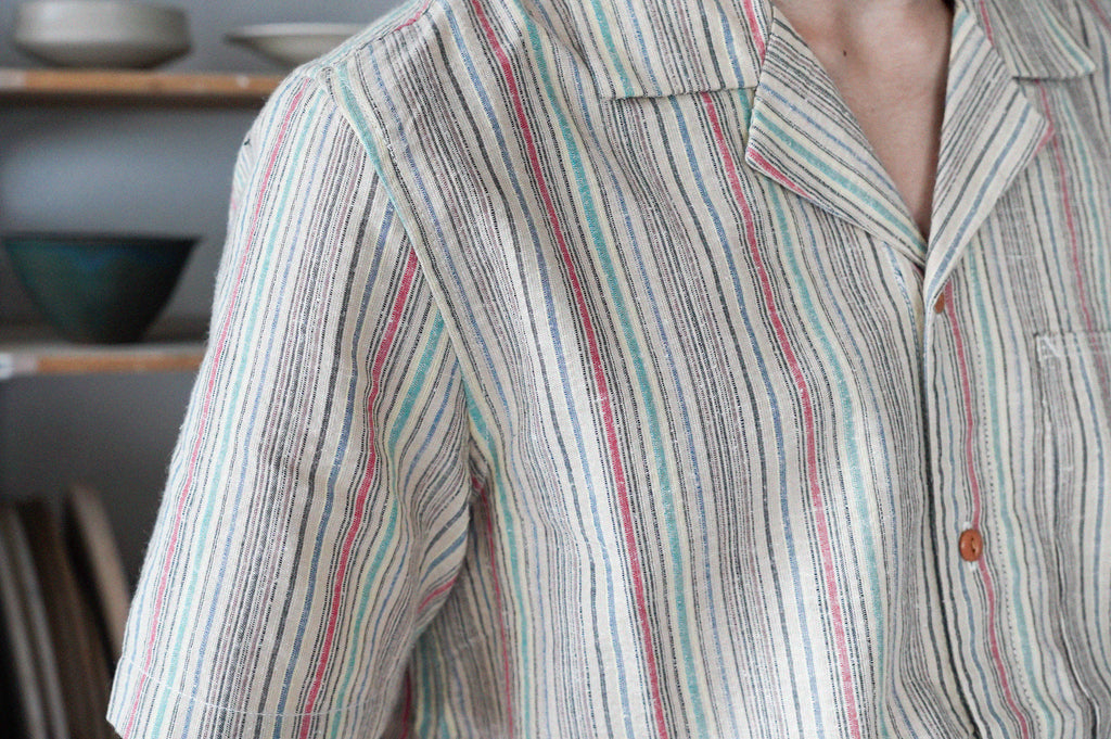 unisex / woven / convertible collar / half sleeve / boxy cut / loose fit / chest pocket / clean finished seams