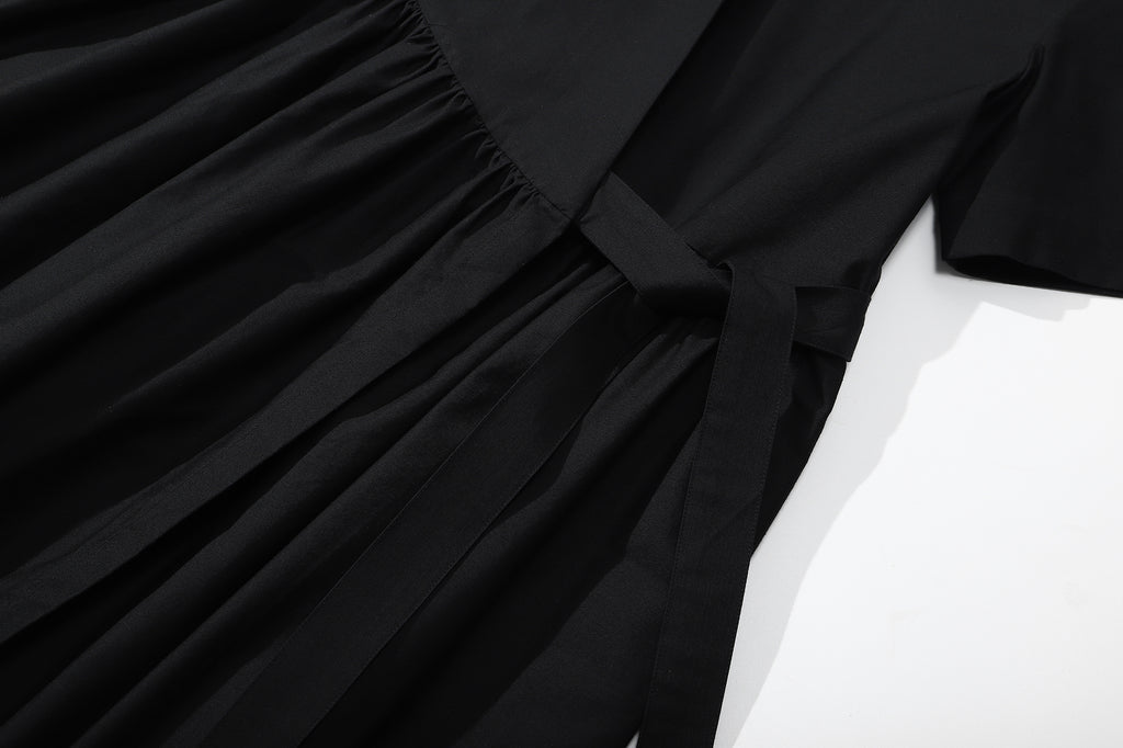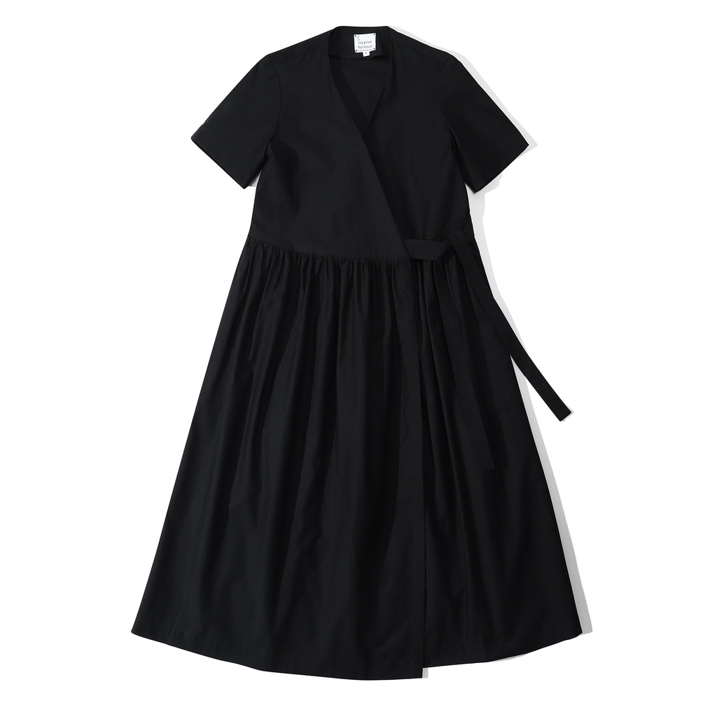 It has a loose fit and maxi dress length, wrap style with inner & outer side straps. Also, there are pockets at both sides.