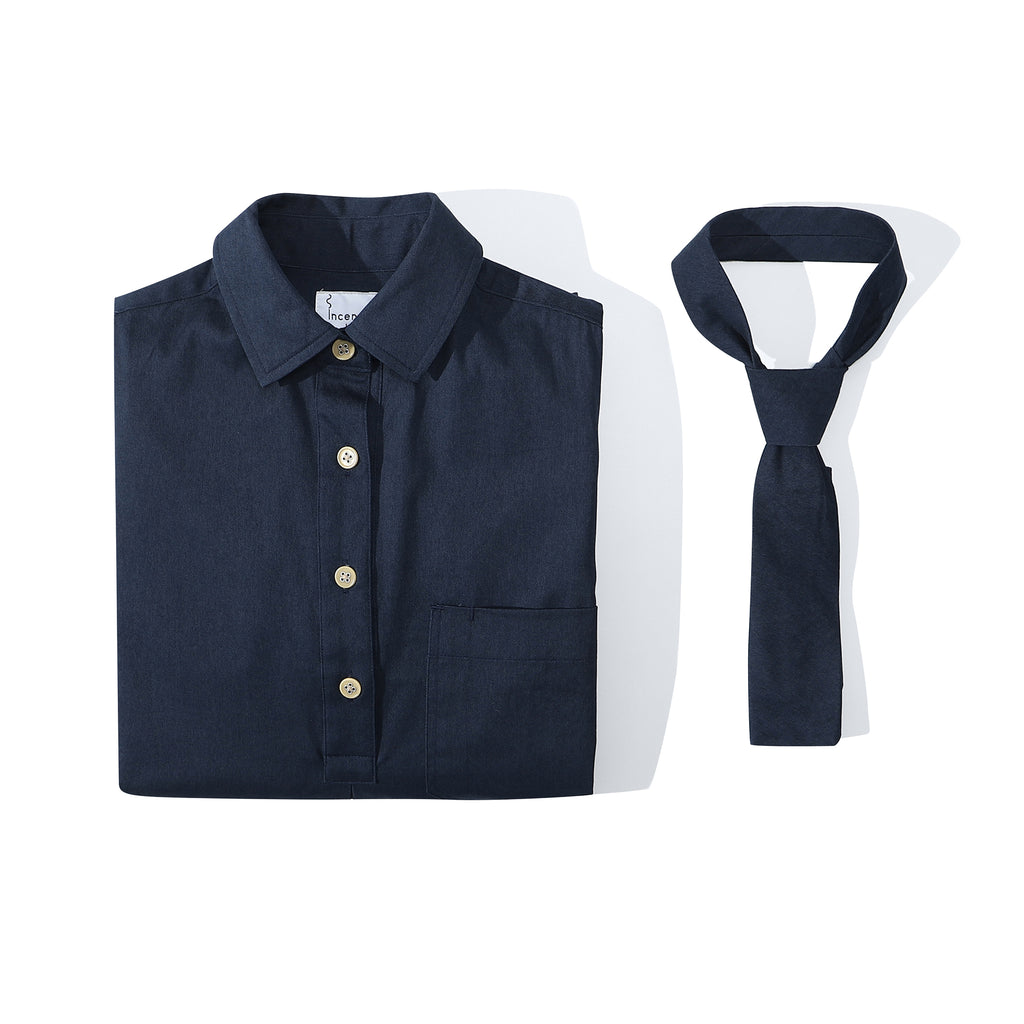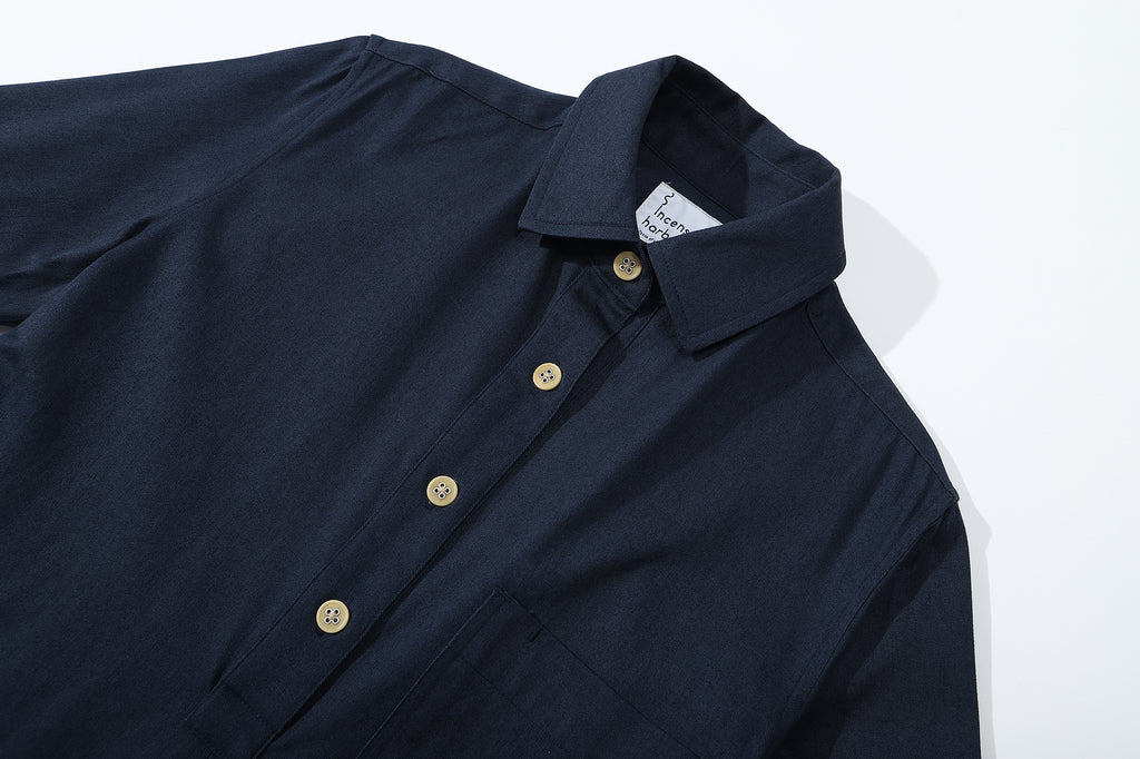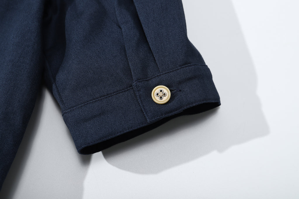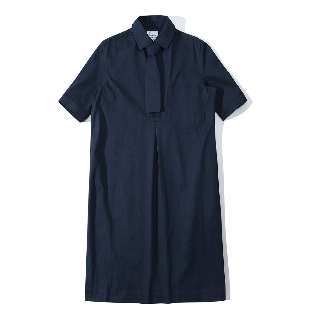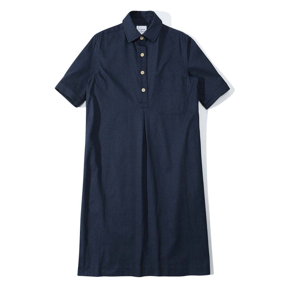 The dress is made of Japanese cotton twill fabric with brushed finishing.