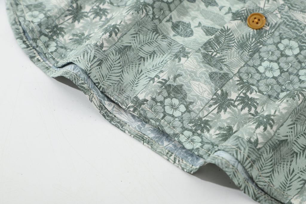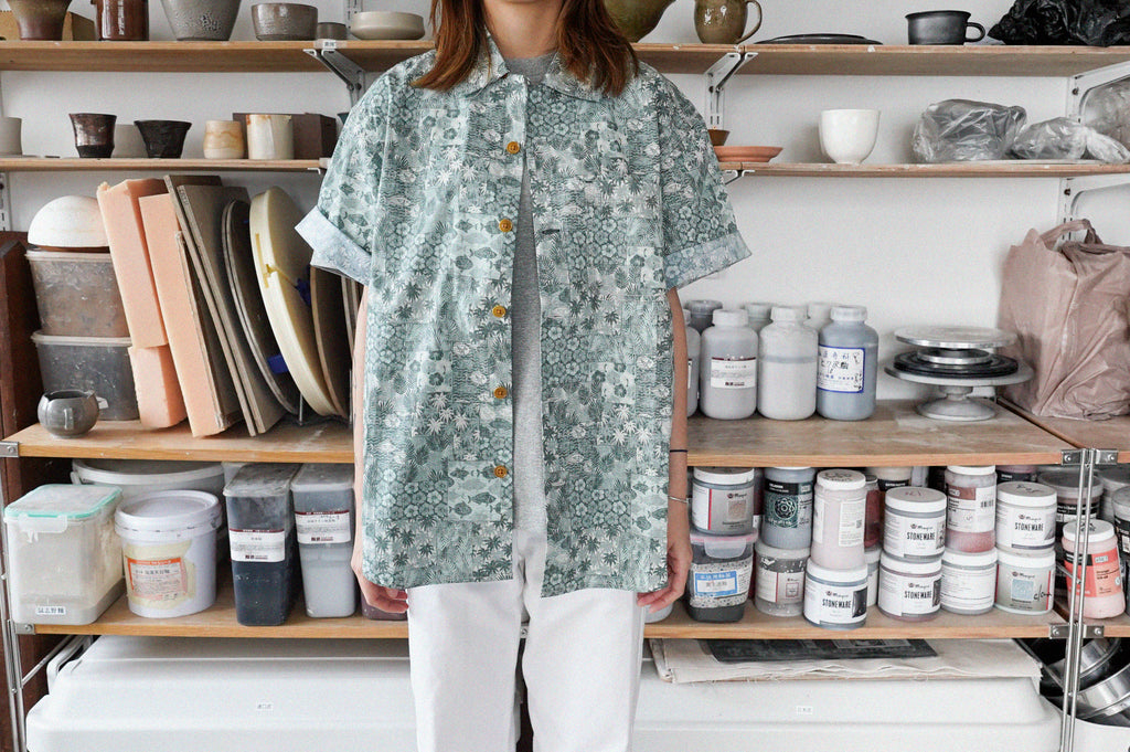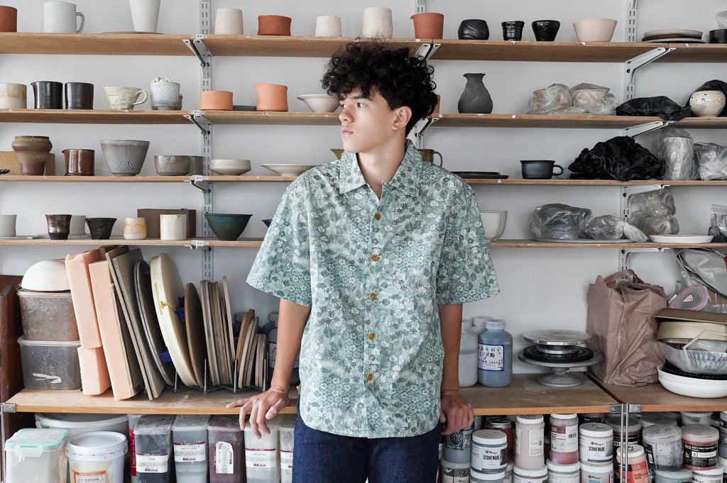unisex / woven / convertible collar / half sleeve / boxy cut / loose fit / chest pocket / contrast bartack and button hole detail / curved hem / clean finished seams