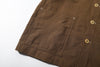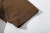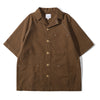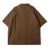 The shirt has a relaxed fit and boxy cut. It also has a corozo button closure, raglan short sleeves, chest pocket, patch pockets and clean finished seams.