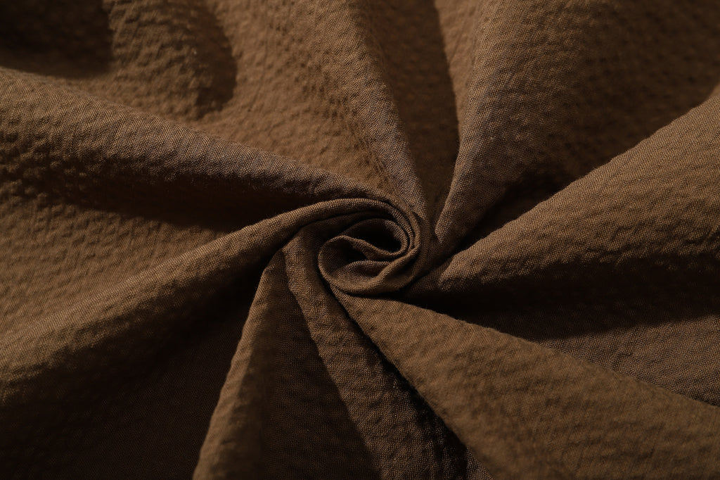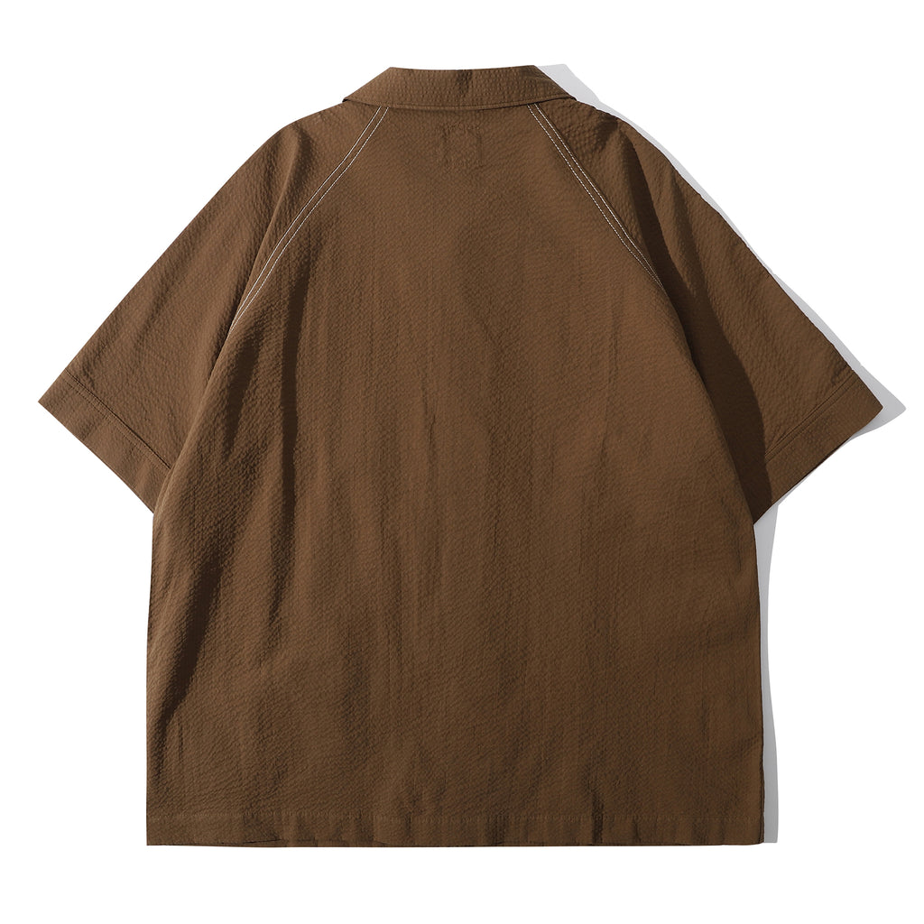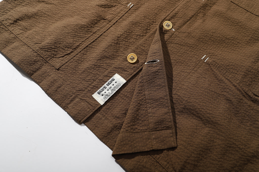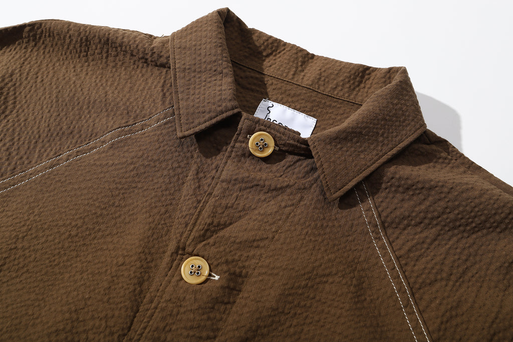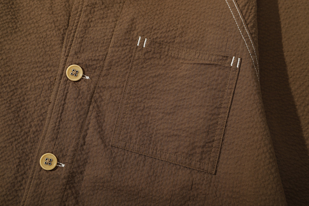 The shirt is made of Japanese cotton seersucker fabric which features with textured stripe appearance.