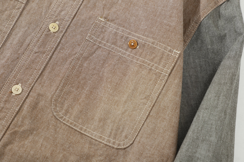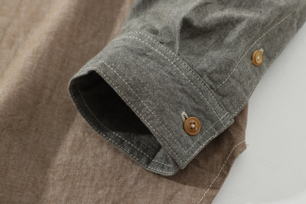 Incense Harbour Color Blocking Work Shirt - 2-Tone Cotton Yard Dyed Oxford - Khaki Mix