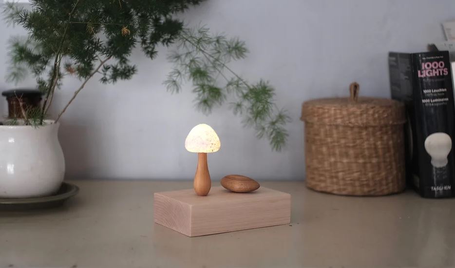 The stone-shape switch is activated by using carefully hidden magnets Made from Maple, White Oak, and pulp.